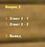 Пример опроса со смещением пунктов ответа (4) и включённым пунктом "Выход"