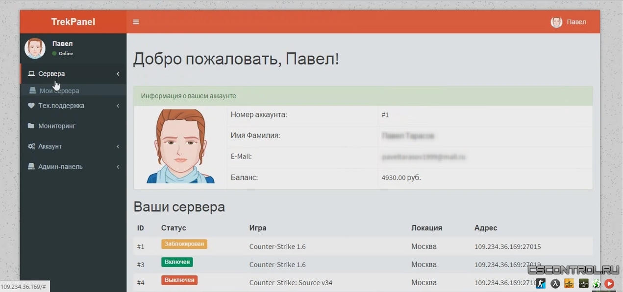 TrekPanel - Панель Управление Игровым Хостингом